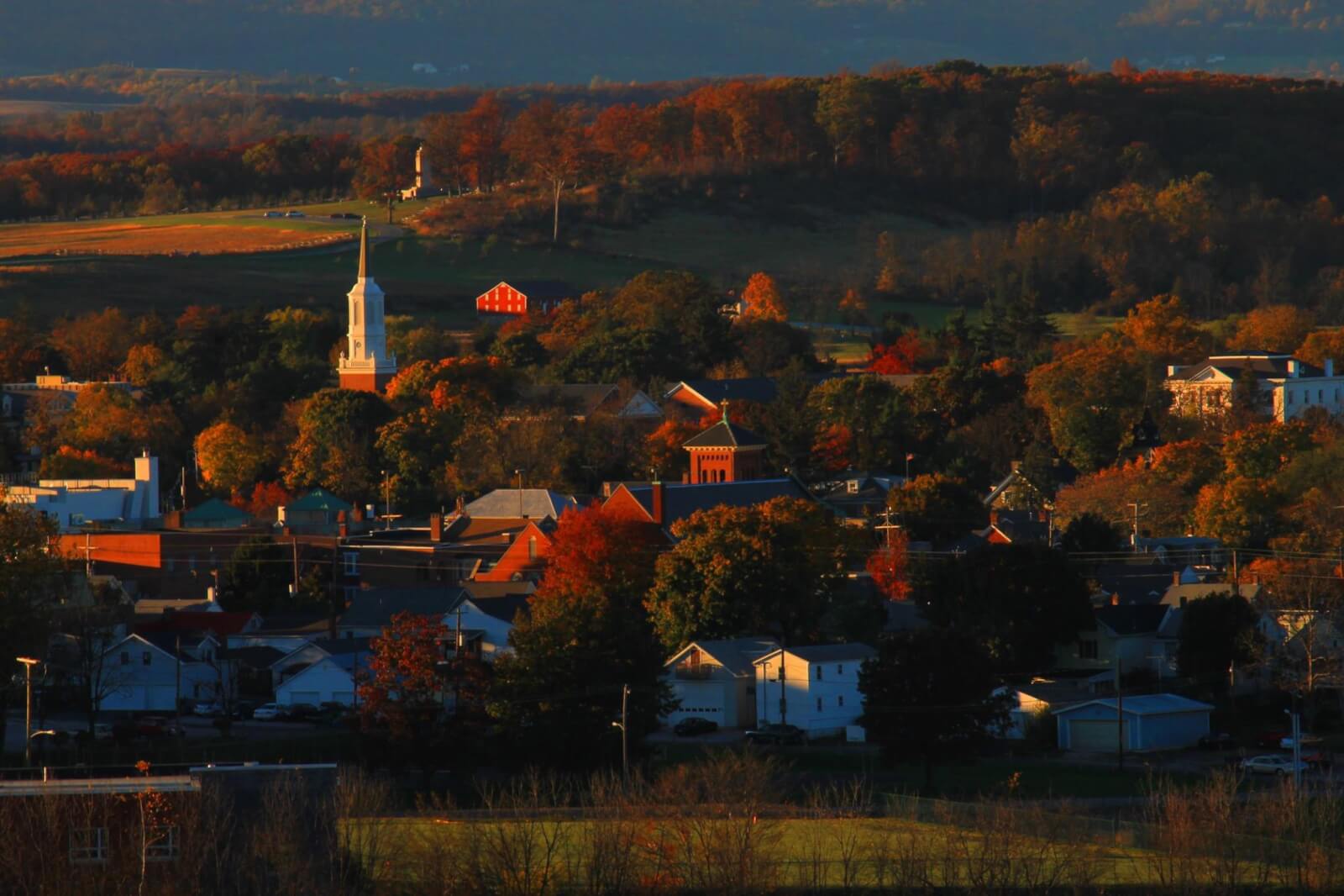 As one of the tallest points in town, the view from the Culp’s Hill Observation Tower is not to be missed. It offers the advantage of being on the eastern side of the town, which means that as you point your camera towards the sunset, you not only get a beautifully lit shot of the entire downtown area, but a view out to the First Day’s Battlefield and Peace Light Memorial as well.