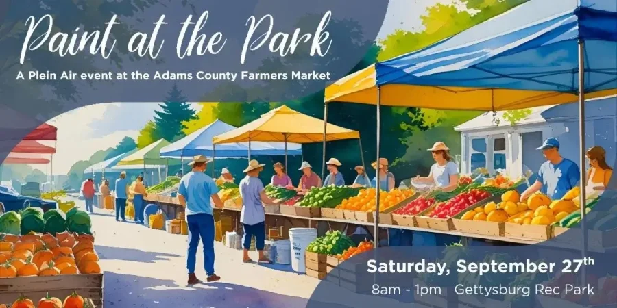 Join the Adams County Arts Council and the Adams County Farmers Market for the Third Annual Paint at the Park! This plein air event invites artists to set up at the market to create and sell their works on Saturday, September 27.