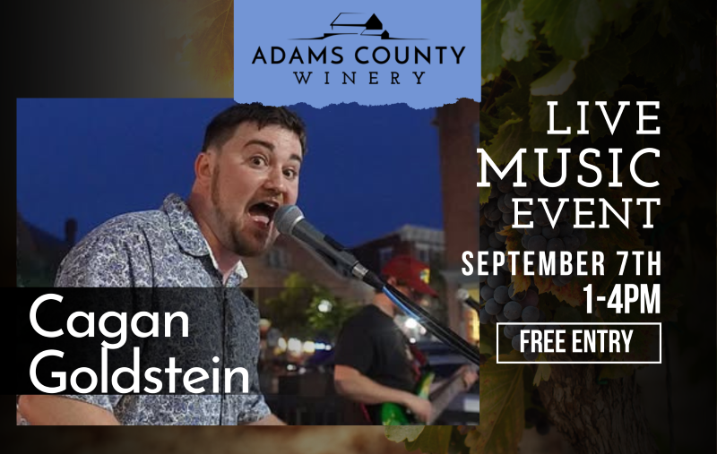 Adams County Winery is excited to welcome back Cagan Goldstein for a Live Music on the Grounds performance! Cagan will perform at the Farm Winery from 1 p.m. – 4 p.m.