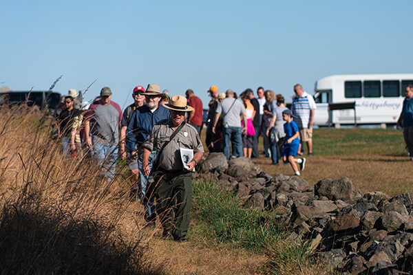 These 2-hour intensive programs examine unique portions of the battlefield, cover significant distances, and cross rough/uneven terrain. It is strongly recommended that visitors bring plenty of water, appropriate seasonal clothing, and sturdy hiking shoes. Please park vehicles with all four wheels on the pavement. Programs may start and end at different locations.