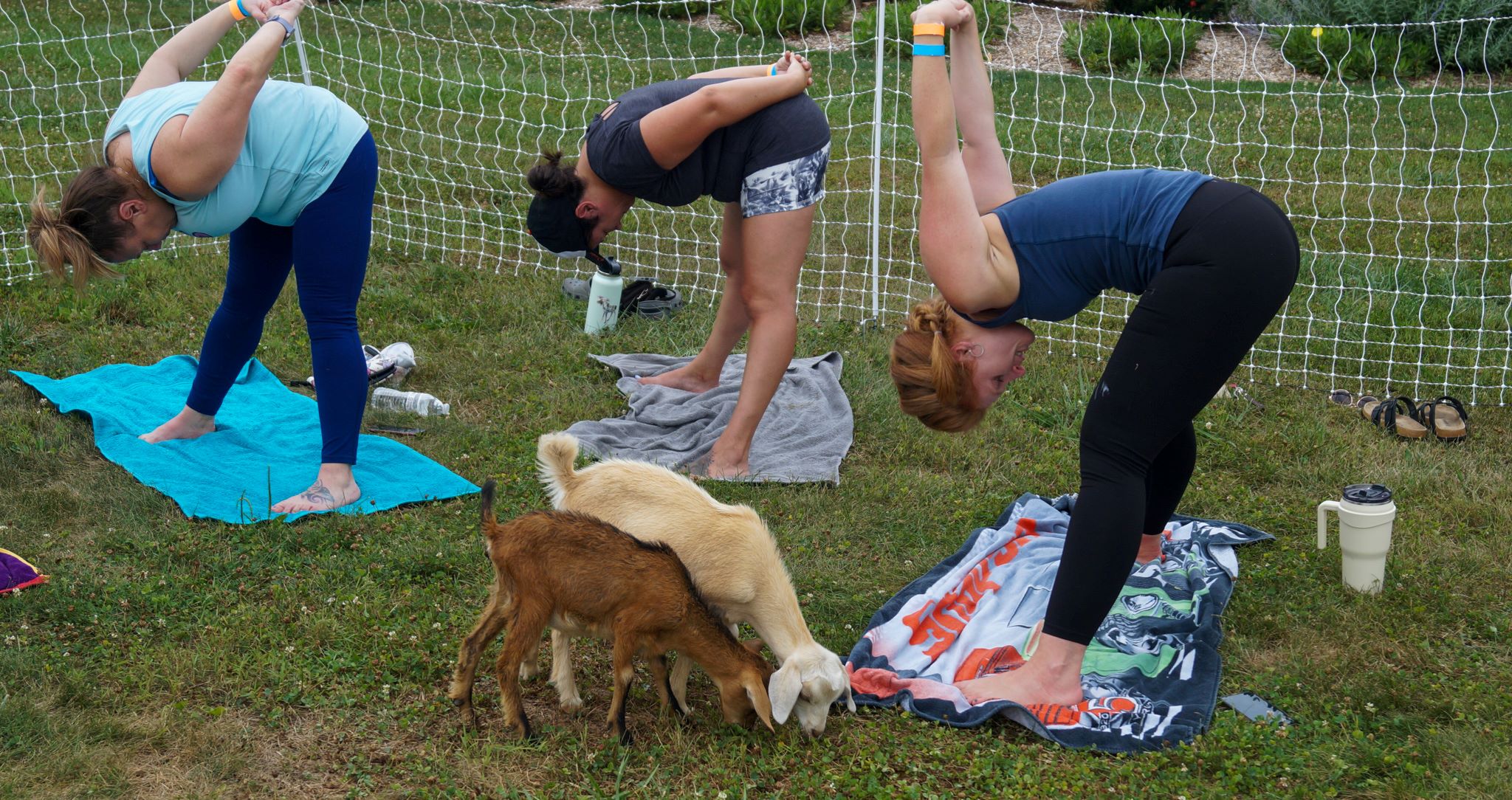 Goat Yoga is Baaack! Join us at the farm for this fun time for first timers and experienced yogis alike. We will have 25 minutes devoted to the yoga class, and an additional 15 minutes for goat cuddles and photos.