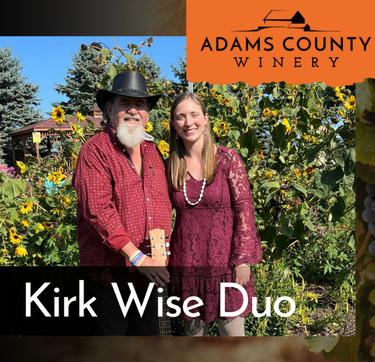 Adams County Winery is excited to welcome back Kirk Wise for a Live Music on the Grounds performance! Kirk will perform at the Farm Winery from 1 p.m. – 4 p.m.