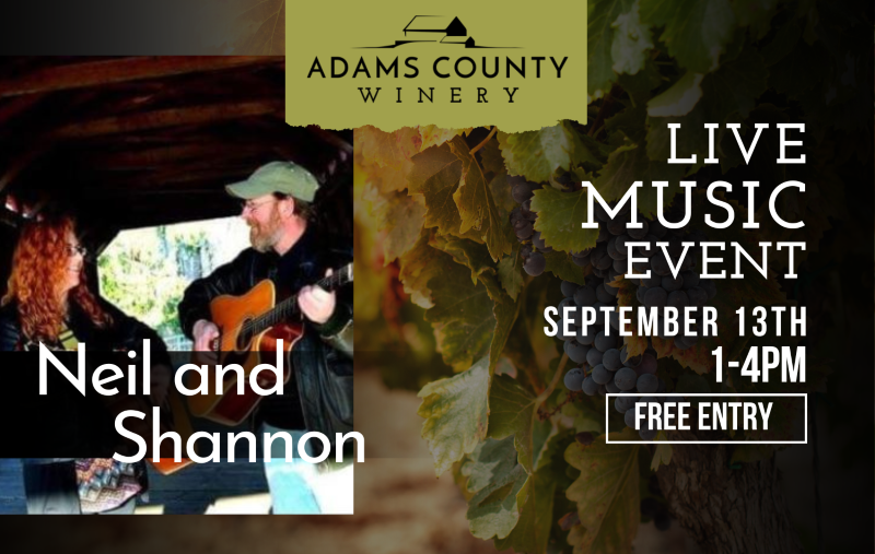 Adams County Winery is excited to welcome Neil and Shannon back again for another Live Music on the Grounds performance. Neil and Shannon will perform at the Farm Winery from 1 p.m. – 4 p.m.