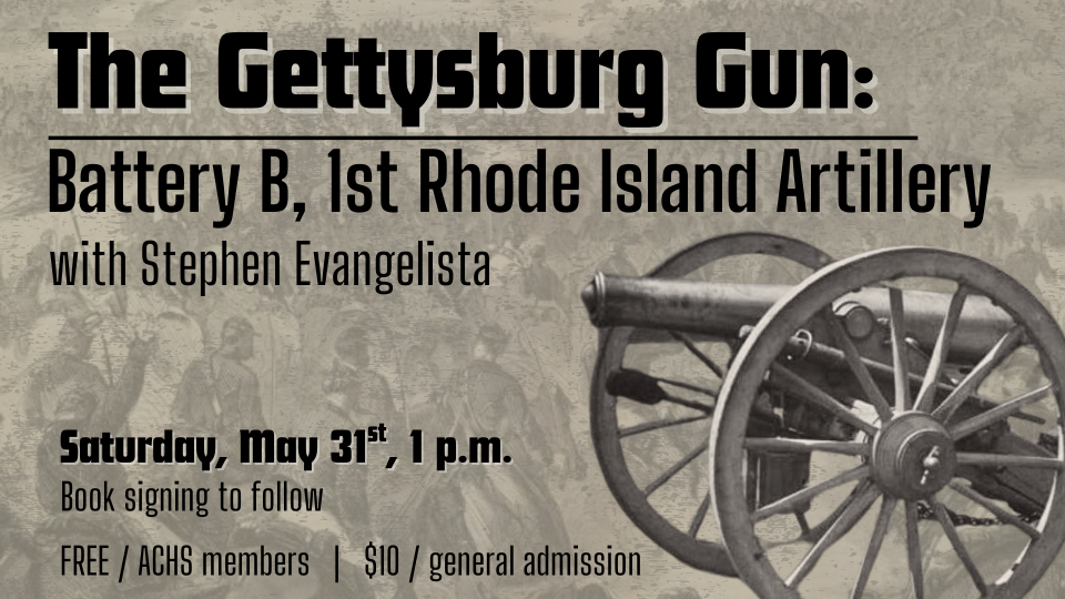 Learn about the incredible story of the Gettysburg Gun from its casting in Boston in 1862, through the crucible of war, to its present home in Rhode Island. A true testament to survival, sacrifice, and honor across three centuries. A book signing will be held after the program.