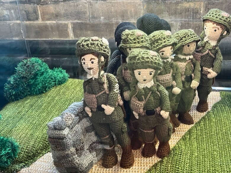 Knitted and crocheted by hundreds of volunteers worldwide, the folk art exhibit was created with guidance from historians, retained by the project, to be historically accurate. Each of the 80 unique scenes illustrate the story of this momentous day in history.