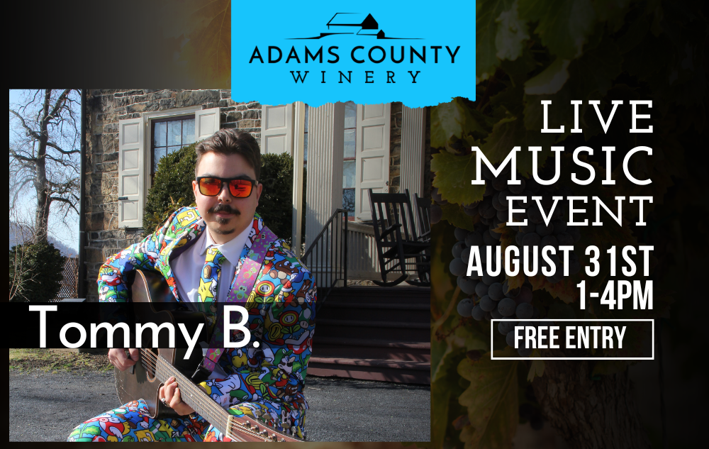 Adams County Winery is excited to welcome back Tommy B. for another Live Music on the Grounds performance! He will perform at the Farm Winery from 1 p.m. – 4 p.m.