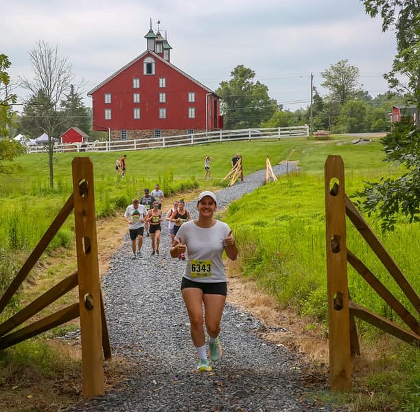 The Gettysburg Trail 5K is a 3.1 mile run or walk on the beautiful and historic Daniel Lady Farm in Gettysburg, PA. The Trail 5K covers 3.1 miles on stone farm roads, grass farm paths, and through farm woods, exclusively on the Historic Daniel Lady Farm’s 200 plus acre property.