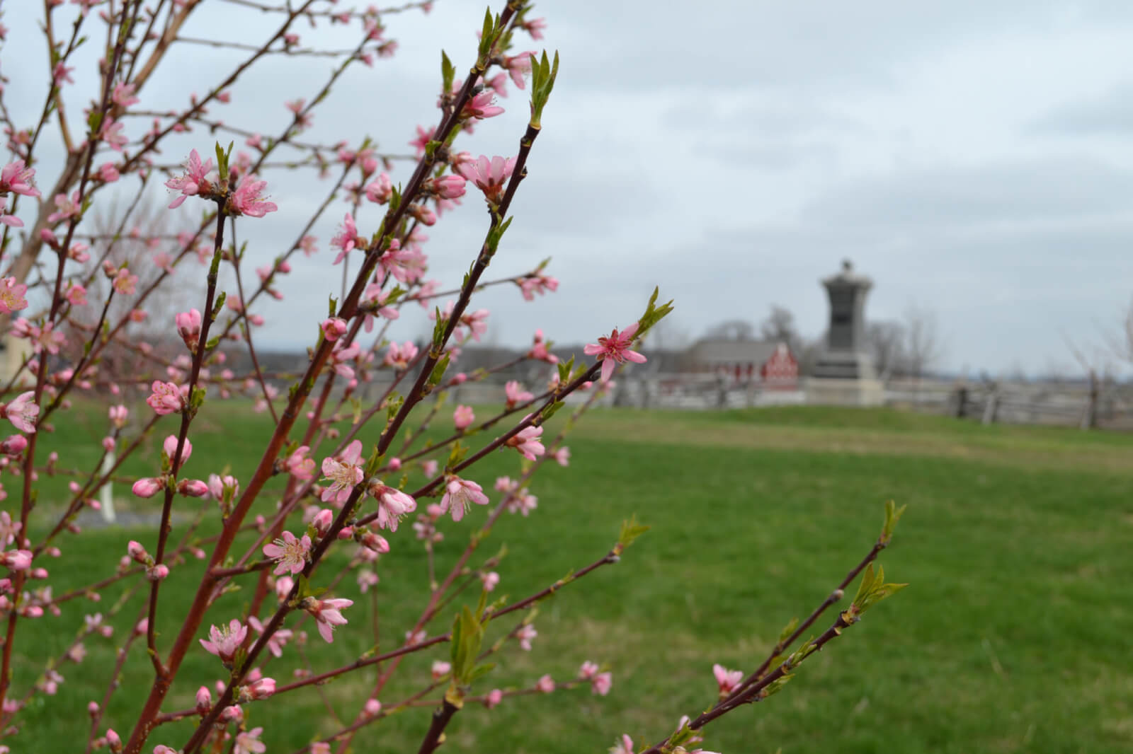 The Gettysburg National Military Park Peach Orchard became a site for battle during the Battle of Gettysburg in 1863. Although replanted several times since then, the site today remains a peach orchard, maintained by the National Park Service. Visitors today can enjoy the vibrant blossoms on the historic, hallowed ground.