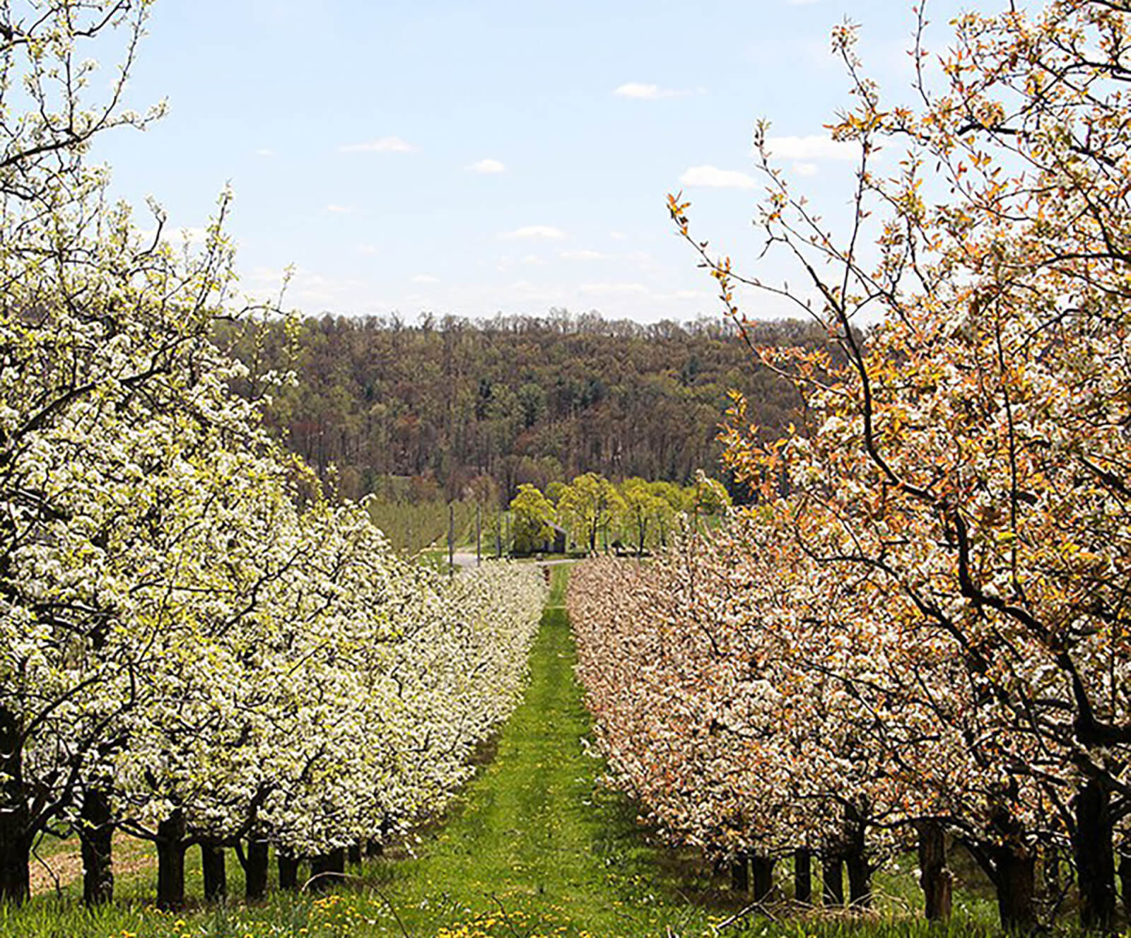 Hollabaugh Bros., Inc. Fruit Farm & Market is tucked into the rolling hills of Adams County and has brilliant views of orchards in bloom from all sides. Be sure to stop in the market for fresh produce or a treat from their in-house scratch bakery – we recommend trying their signature Apple Cider Donuts.